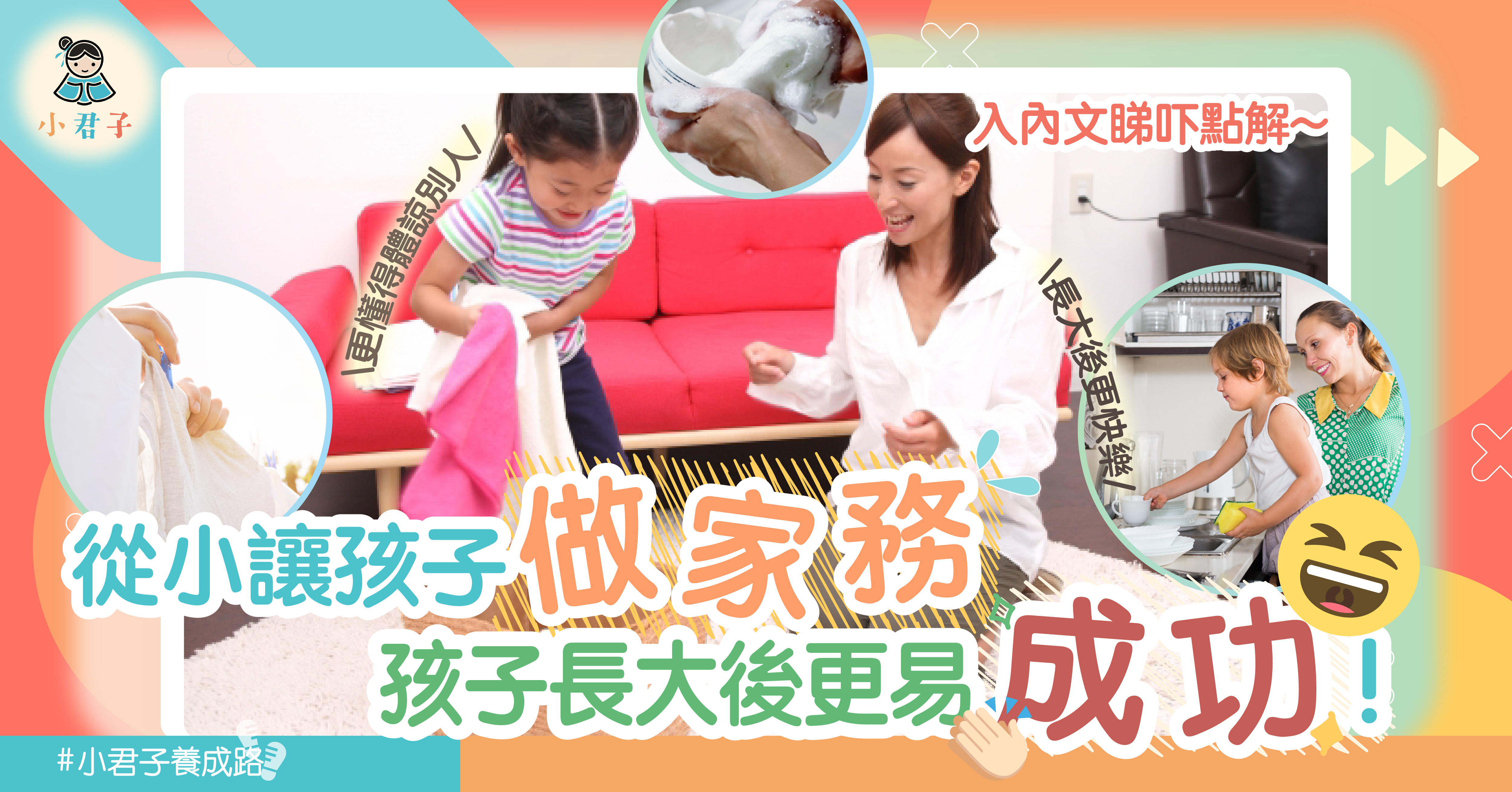 今時今日嘅香港,大部份家庭都有聘請工人姐姐幫手做家務,小朋友嘅工作分配亦十分簡單,就係做功課、溫習同上補習或者興趣班,同成年人一樣忙碌。但最近有研究發現,原來小朋友參與喺家務入面,佢哋日後嘅成功機率反而會較大。究竟係咩原因令佢哋成功呢?
