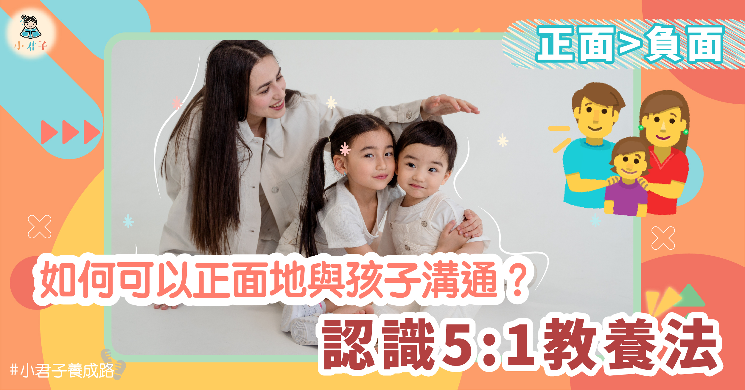 管教小朋友嘅時候,你有冇三句唔埋兩句就會鬧小朋友,或者「呢樣唔好,個樣又唔好」呢?華人傳統文化好多時候都會偏向對小朋友嚴厲,以責備形式去教導小朋友嘅良好品格。美國心理學家Gottman父婦喺近年研究中研發出一種強化親子關係嘅方法,叫做「5:1教養法」。呢種方法可以有效咁令關係處於正面情緒入面,令雙方都可以獲得滿足感。